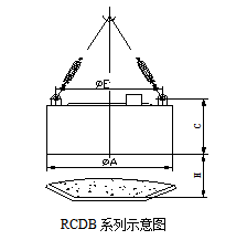 四、RCDB系列懸掛盤式自冷電磁除鐵器主要技術(shù)參數(shù)、外形尺寸                      執(zhí)行標(biāo)準(zhǔn):JB/T7689