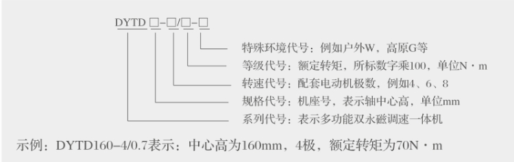 一體機(jī)型號由系列代號、規(guī)格代號、轉(zhuǎn)速代號、等級代號和環(huán)境代號五部分組成。